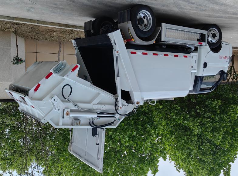 四、其他說明: 該產品是我司全新自研 4.5 噸底盤的基礎上,與上裝聯合一體化設計開發的全新一代壓縮式垃圾車。 翻桶機構作為后裝件,車輛上牌后加裝。藍牌,C 照可駕駛。可下地庫。