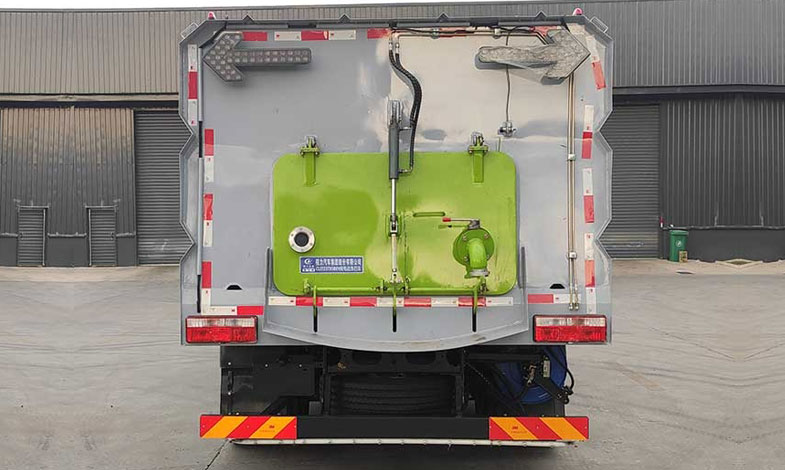 3、洗掃車采用東風(fēng)純電動(dòng)二類汽車底盤改裝,加裝風(fēng)機(jī)、高壓水泵、清水箱、垃圾箱、左右立掃、帶噴水桿的寬吸嘴、掃盤降塵系統(tǒng)、液壓系統(tǒng)、專用裝置電控系統(tǒng)和副車架等改裝而成。