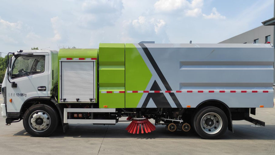 7、程力牌純電動(dòng)洗掃車具有路面清洗、路面清掃、路緣清洗、路緣和路緣石立面洗刷、低壓沖洗、噴霧除塵等多功能。有“全洗掃”、 “左洗掃”、 “右洗掃”、 “全掃”、 “左掃”、 “右掃”等多種作業(yè)模式可選擇。選擇“全洗掃”模式清洗廣場(chǎng)和路面,清洗效率高效果好,洗凈率達(dá)90%以上。選擇“左洗掃”或“右洗掃”模式清洗路面和路緣、洗刷路緣石立面。需要進(jìn)行路面清掃或路面保潔作業(yè)時(shí),可選擇掃路模式。需要噴霧除塵時(shí),可開啟噴霧裝置,進(jìn)行噴霧除塵作業(yè)。