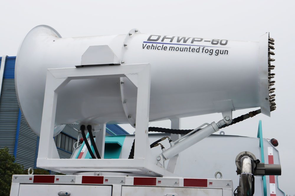 4、工作效率高、噴霧速度快;對容易引起塵埃的堆場噴水除塵時,噴出的霧粒細小與飄起的塵埃接觸時,形成一種潮濕霧狀體,能快速將塵埃抑制降沉,霧量沉降率可達95%。