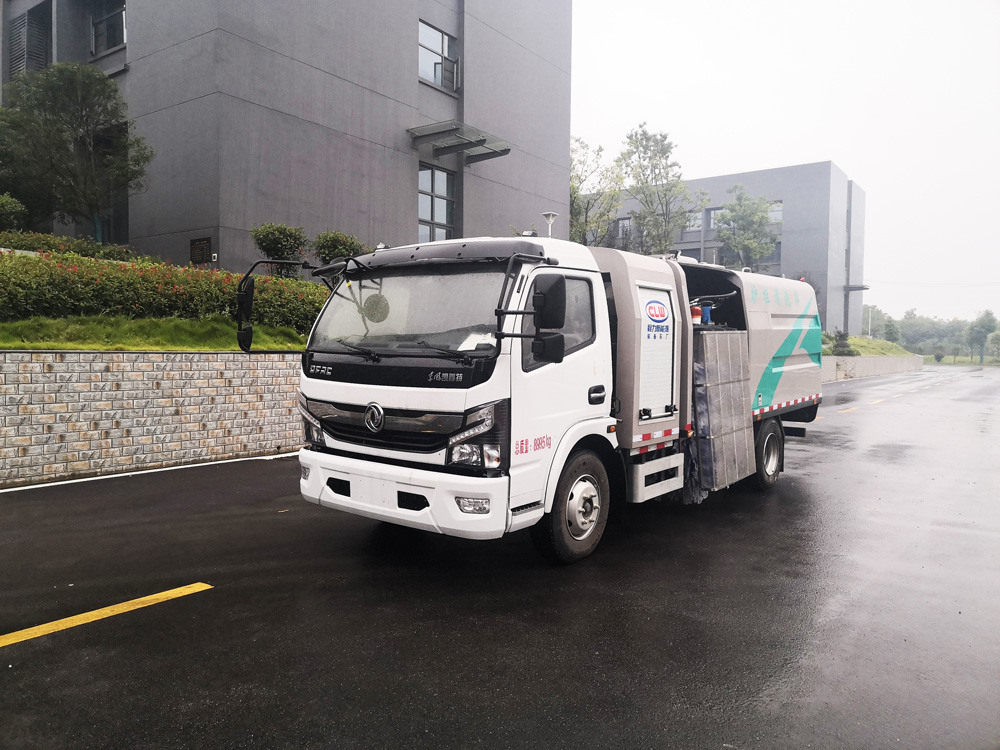 四、其他說明: 東風純電動護欄清洗車,是在標準純電動二類底盤的基礎上,加裝沖洗系統、馬達,清洗刷,由機械、液壓、電器三部分合為一體的專用沖洗作業車。本車具有獨立的水路系統,為清洗車工作提供壓力水源。其工作原理是:利用水泵產生的水,經噴水架的噴嘴噴出,利用電機馬達帶動清洗刷,能將護欄的陳舊污漬清洗干凈;使用高壓噴槍還可清洗路標、廣告牌、高架路等;噴霧系統具有強大的噴霧降塵、噴撒空氣消毒劑及調節空氣濕度功能。