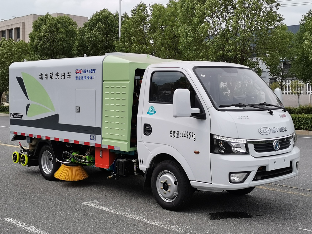 四、其他說明: 東風途逸純電動洗掃車是我公司自行設計開發、具有自主知識產權、國際領先技術水平的新一代路面、路沿清洗、清掃及噴霧降塵的專用設備。該款洗掃車結合了掃路車及高壓清洗車的功能特點,并解決了吸塵車無法在城市道路上清洗路沿的短板,在作業時利用掃刷將地面垃圾掃向車內側,路面的頑固附著物由高壓噴水桿噴出的水流沖起,再由吸盤吸入垃圾箱儲存.具有綠色環保、功能齊全、設計合理、能耗低、清洗范圍廣、使用壽命長等特點。