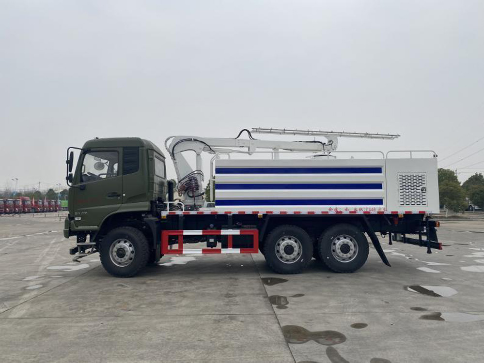太陽能面板清洗車采用東風越野六驅底盤,它適用于各種路面灑水、噴霧、降溫、除塵、沖洗,主要用于光伏面板、 隧道墻壁清洗,同時可用于路面養