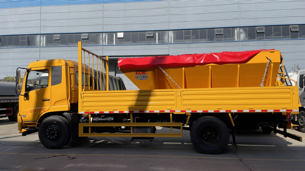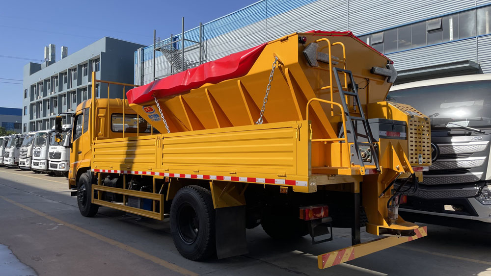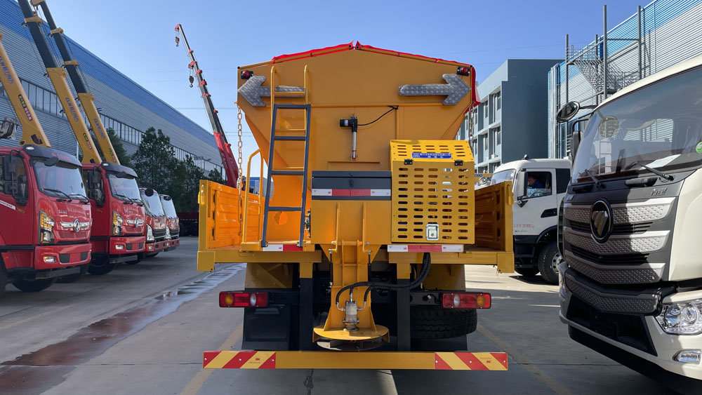 - 融雪撒布機(jī)可撒布鹽、砂、融雪劑等多種融雪物料,撒布寬度和撒布量可調(diào)節(jié)控制,計(jì)量穩(wěn)定、準(zhǔn)確、可靠,撒布寬度一般為 2-14m,撒布量為 20-300g/m² 可調(diào) 。撒布機(jī)采用碳鋼板或不銹鋼結(jié)構(gòu),具有良好的耐腐蝕性,動(dòng)力組選用國(guó)內(nèi)知名品牌發(fā)動(dòng)機(jī),性能穩(wěn)定。其采用 V 型料倉(cāng),結(jié)構(gòu)簡(jiǎn)單可靠,使融雪劑自動(dòng)落料,出料完全,無殘留,并且上置過濾網(wǎng)可減少大顆粒或雜物進(jìn)入設(shè)備,保證機(jī)構(gòu)安全運(yùn)行,防滑輸送帶則保證了融雪劑輸送連續(xù)、均勻.