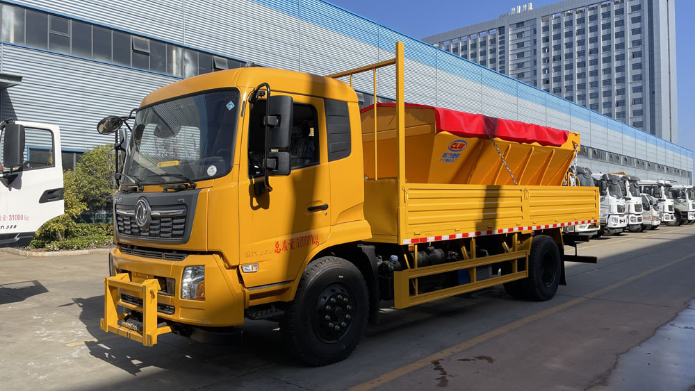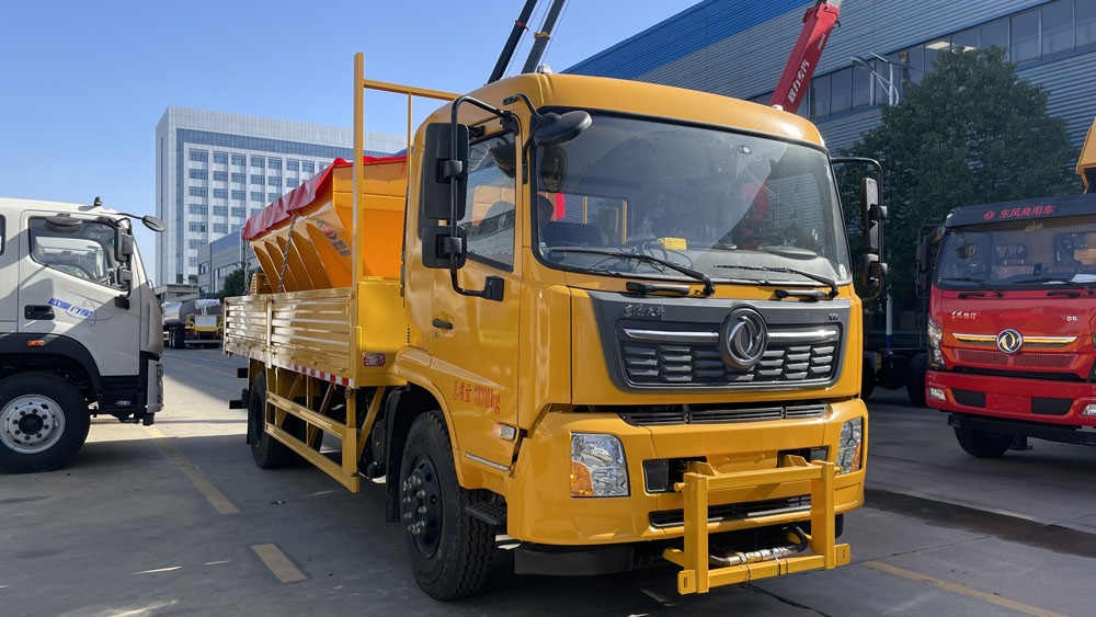 一、底盤配置: 采用東風(fēng)天錦DFH1180EX8車身,配置玉柴D6.7NS6B230發(fā)動(dòng)機(jī)169/230馬力,國(guó)六排放標(biāo)準(zhǔn),軸距4200,4500,4700,(mm),整備質(zhì)量9噸,額定載質(zhì)量8.805噸,五擋變速箱,帶動(dòng)力轉(zhuǎn)向,帶原廠空調(diào),該車用于冬季撒布融雪劑;專用裝置為撒布機(jī), 2.前伸尺寸均為160mm; 3.側(cè)防護(hù)所用材料為Q235,連接方式為焊接,后部防護(hù)所用材料為Q235,離地高度為400mm; 該車上黃牌,城區(qū)道路請(qǐng)注意限行標(biāo)識(shí)。