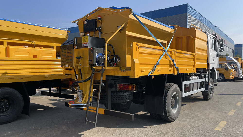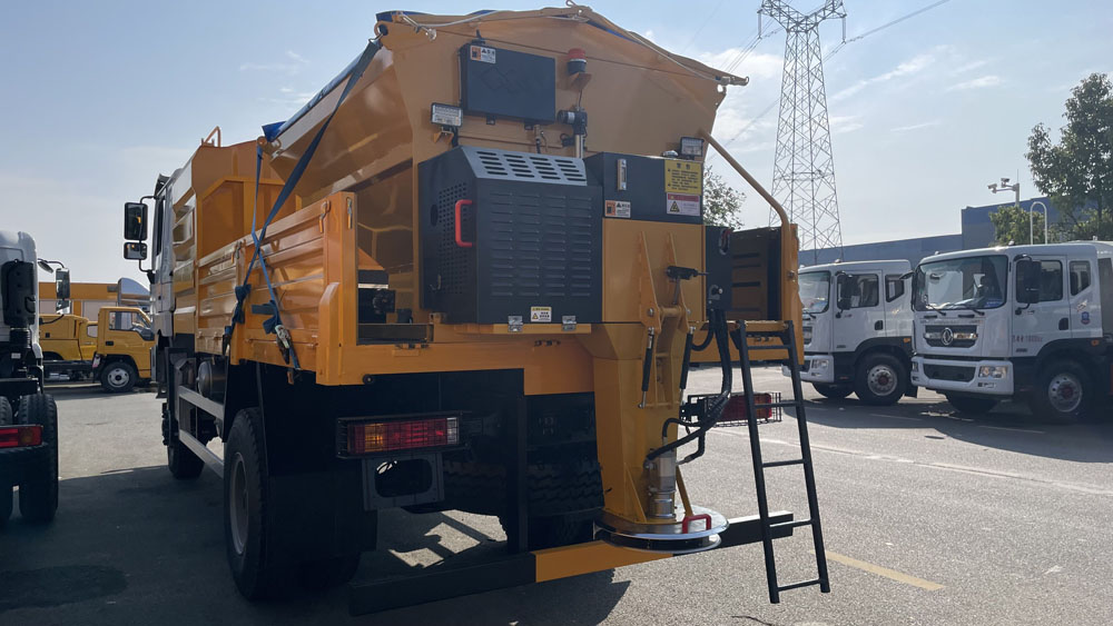 - 撒布范圍廣且可調(diào)節(jié):撒布寬度一般在較寬的范圍內(nèi)可無級(jí)調(diào)整,如 1-15m,能適應(yīng)不同道路寬度的融雪需求。同時(shí),撒布量也可根據(jù)實(shí)際情況進(jìn)行精確調(diào)節(jié),通常為 20-300g/m²,可通過駕駛室內(nèi)的電控系統(tǒng)或液壓控制系統(tǒng)方便地操作,以滿足不同路況和天氣條件下的融雪要求3.