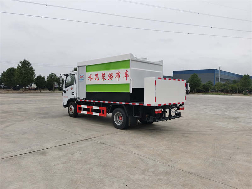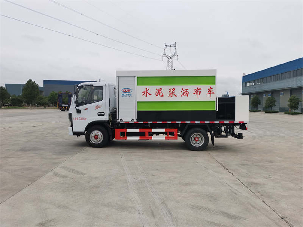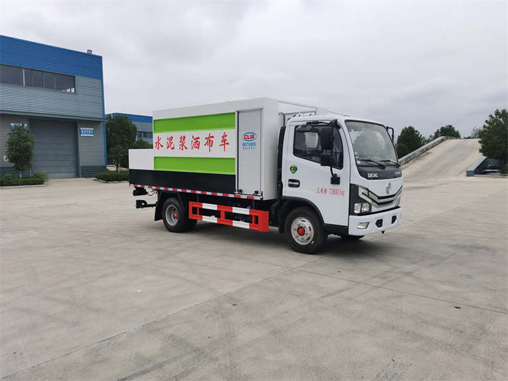 四、其他說明: 水泥罐、清水罐采用 Q235 優質碳鋼制作,高壓水泵,水泥泵(專用),攪拌系統,液壓系統,水罐到攪拌罐供 水系統(渣漿泵),15 米高壓清洗管道(帶卷盤、手持清洗槍),減速分動箱(車輛在行駛工作過程中將車速減慢 從而達到更加理想的灑布效果),尾部 14 個水泥漿專用噴頭,最大灑布寬度 4 米。標配水罐向攪拌罐供水系統,標 配提升裝置(用于袋裝水泥向罐體頂部運輸)。
