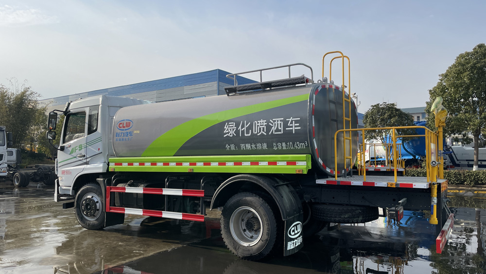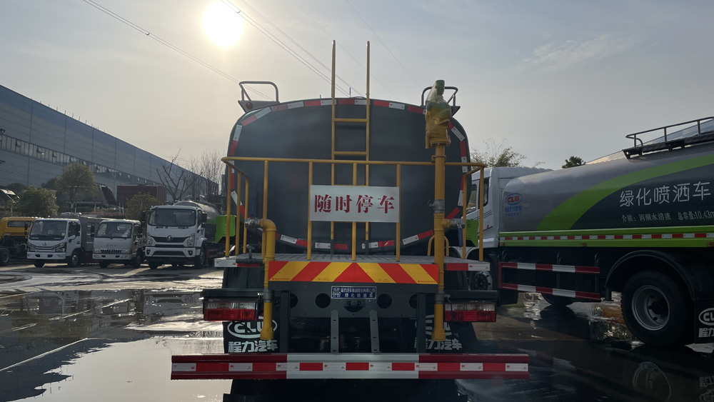 四、其他說明: 罐體由國標(biāo)5mm厚優(yōu)質(zhì)碳鋼板一次性卷壓成型,二保焊行走小車自動焊接,焊縫均勻、美觀,避免了人工焊接的漏焊和虛焊,罐體內(nèi)部加固處理,并設(shè)置防浪板,罐體內(nèi)外做防銹處理,標(biāo)配前沖、后灑、側(cè)噴、后置式工作平臺,平臺帶踏梯,四周有安全護欄,平臺上設(shè)有高壓水炮,可360°旋轉(zhuǎn),可調(diào)成:直沖狀、大雨、中雨、小雨、毛毛雨。