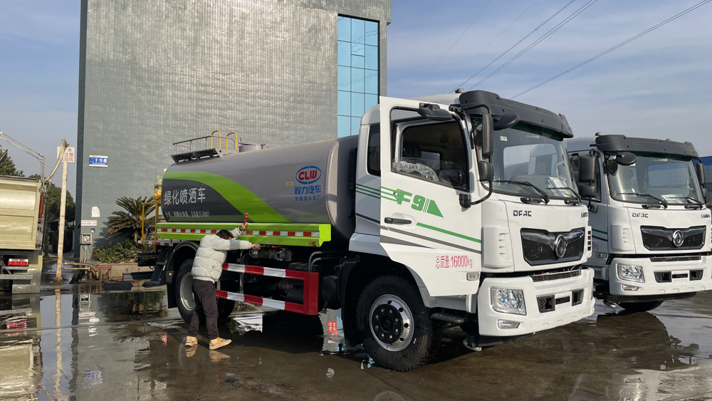 三、選裝配置: 選配駕駛室內(nèi)電控氣動操作;大鴨嘴前沖噴頭壹對;萬向前沖球閥;路面沖洗水管卷盤;本田高壓水泵,水槍可沖洗人行道、移動洗車等; 藥盤;長警燈,LED箭頭燈;罐側(cè)帶閘門,罐后加裝噴霧降塵裝置;灑水車泵標(biāo)配程力泵選配杭州威龍泵;可對主管道加粗,可選316大口徑球閥;罐體內(nèi)防腐、保溫、襯塑處理,灑水車作運水車用可加裝自流口。運熱水罐體可做保溫,運生活用水可做食品級304不銹鋼罐體。
