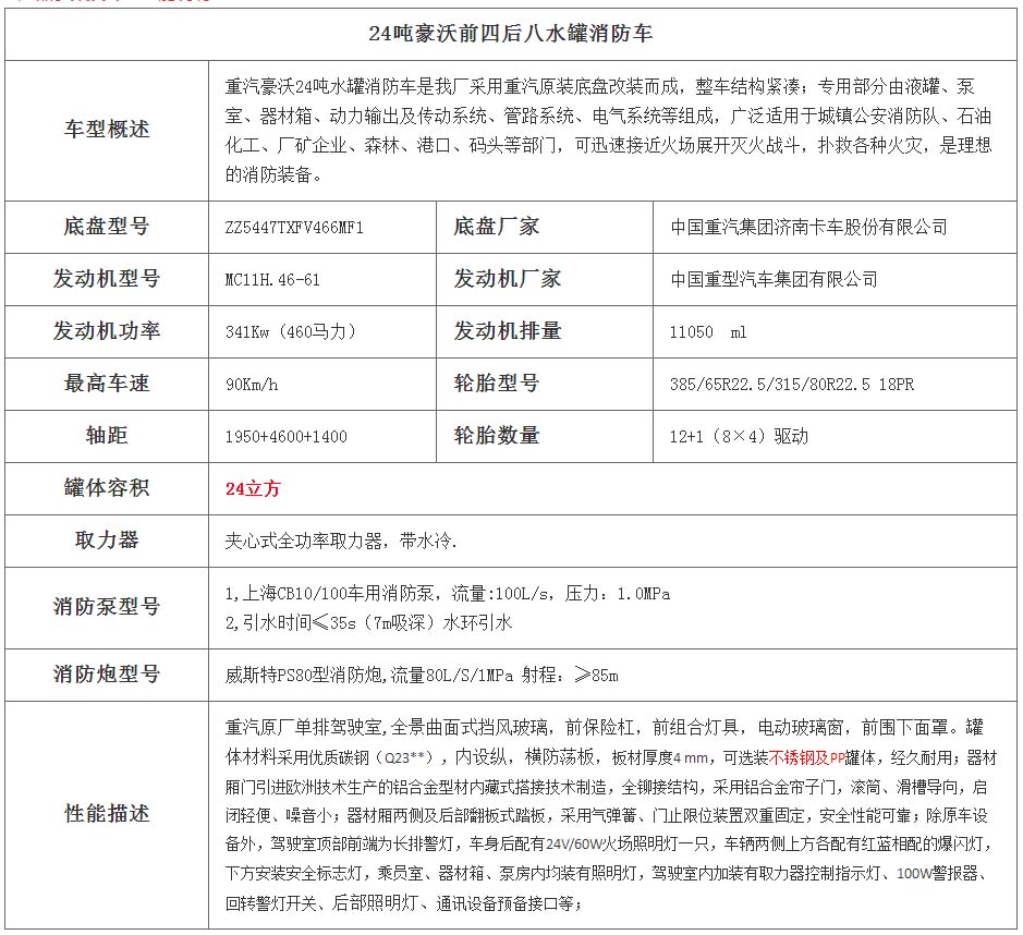 一、底盤配置: 采用重汽豪沃HOWOZZ5447TXFV466MF5車身,配置玉柴MC11.46-61發(fā)動(dòng)機(jī)460馬力,國(guó)六排放標(biāo)準(zhǔn),軸距1950+4600+1400(mm),整備質(zhì)量17.2噸,額定載質(zhì)量24.8噸,陜齒十二擋變速箱,帶動(dòng)力轉(zhuǎn)向,帶原廠空調(diào),該車上黃牌,城區(qū)道路請(qǐng)注意限行標(biāo)識(shí)。